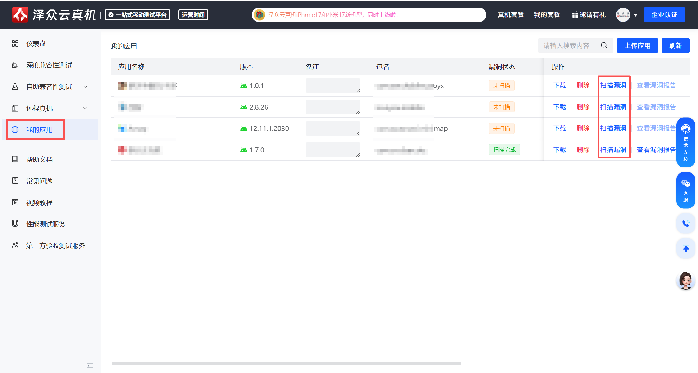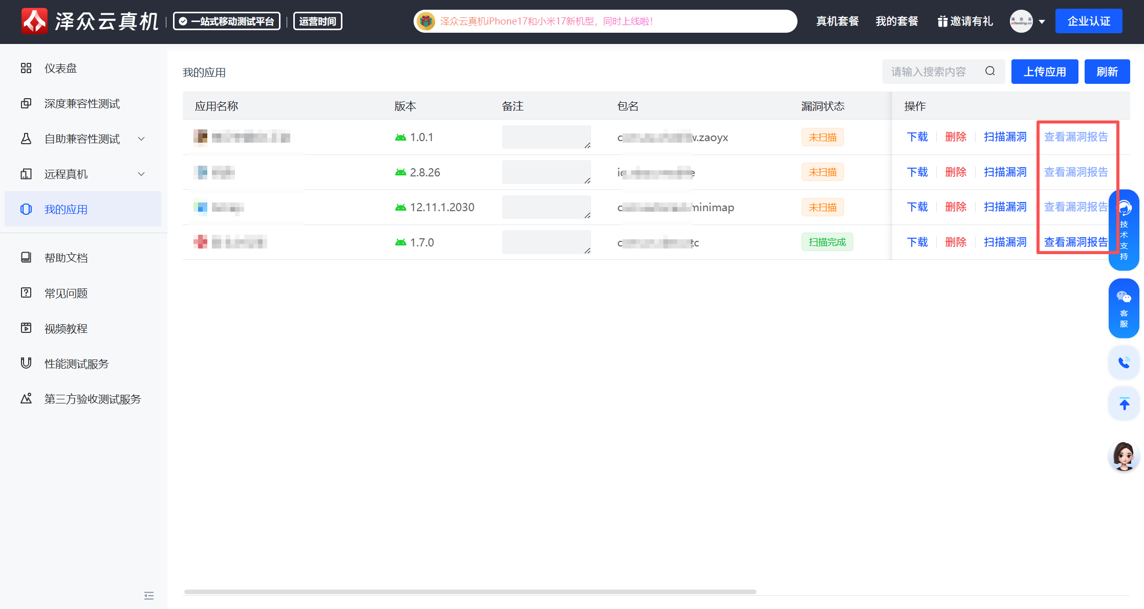 近期澤眾云真機(jī)平臺技術(shù)團(tuán)隊(duì)升級了App安全漏洞免費(fèi)檢測,快速獲取安全測試報(bào)告服務(wù)。