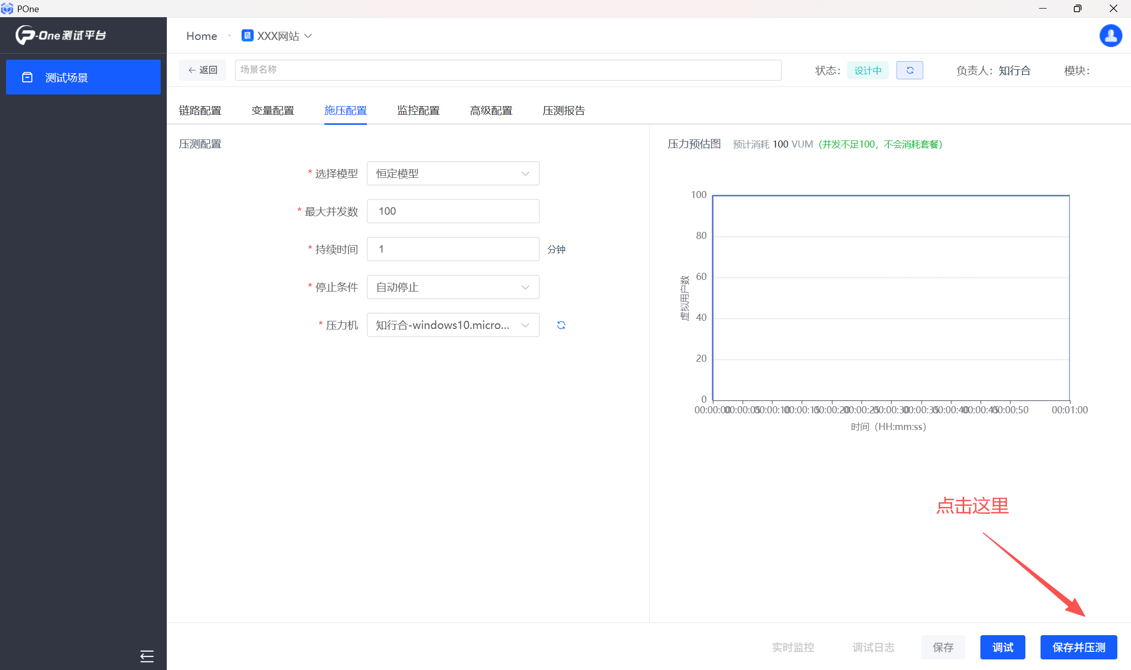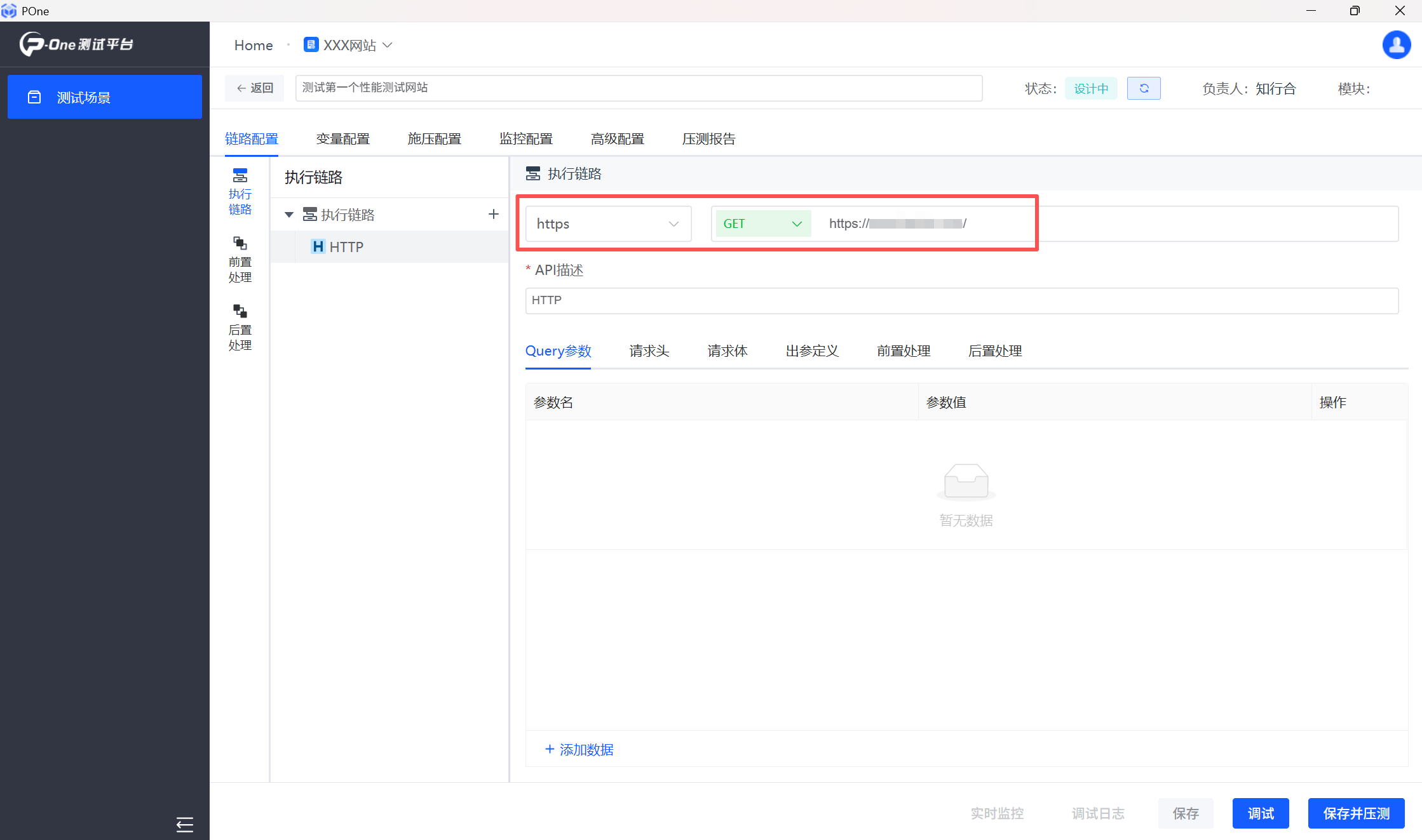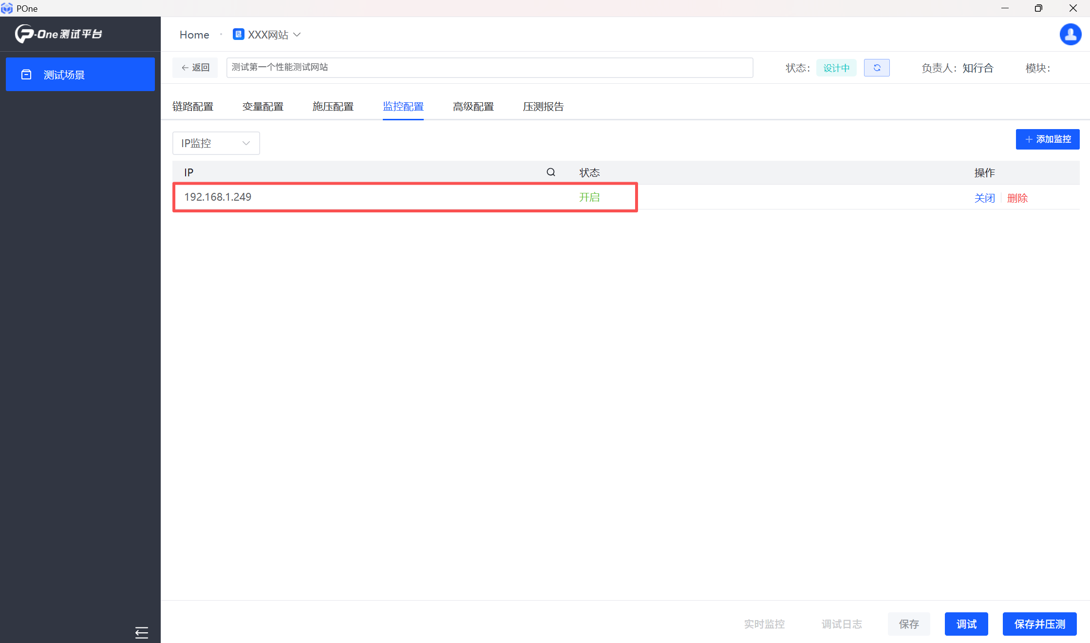 首先,先“保存”設(shè)置,然后“調(diào)試”設(shè)置,是否可用,最后在“壓測(cè)”。