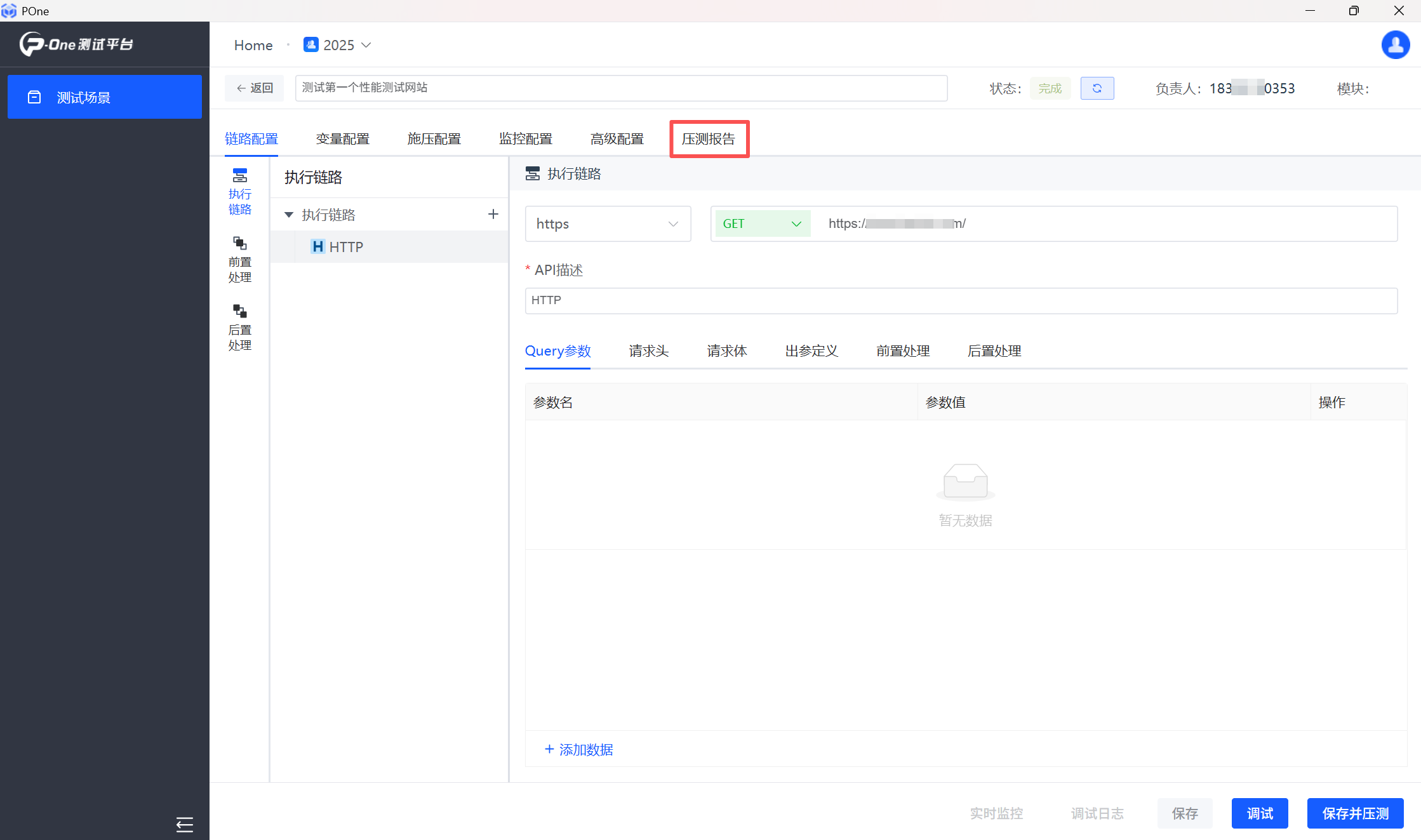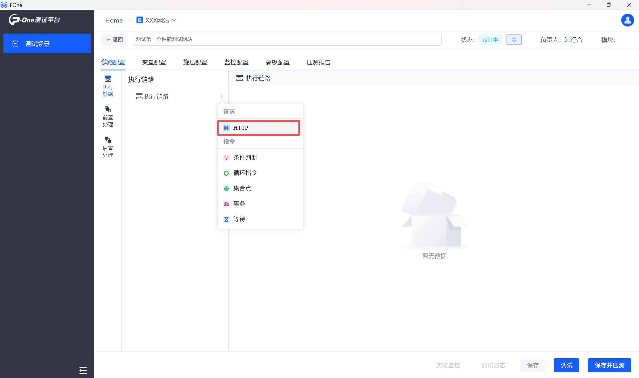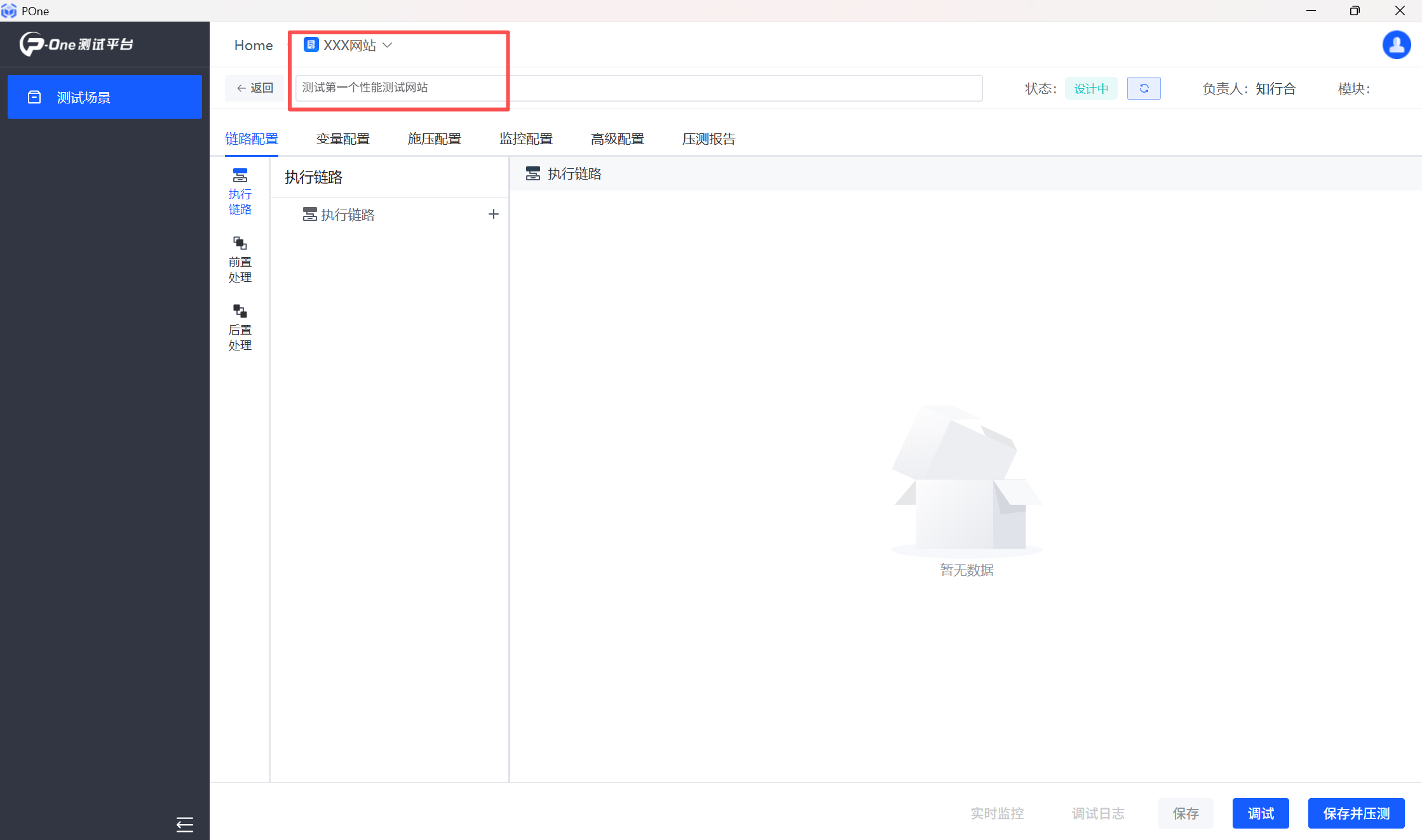 首先,先“保存”設(shè)置,然后“調(diào)試”設(shè)置,是否可用,最后在“壓測(cè)”。