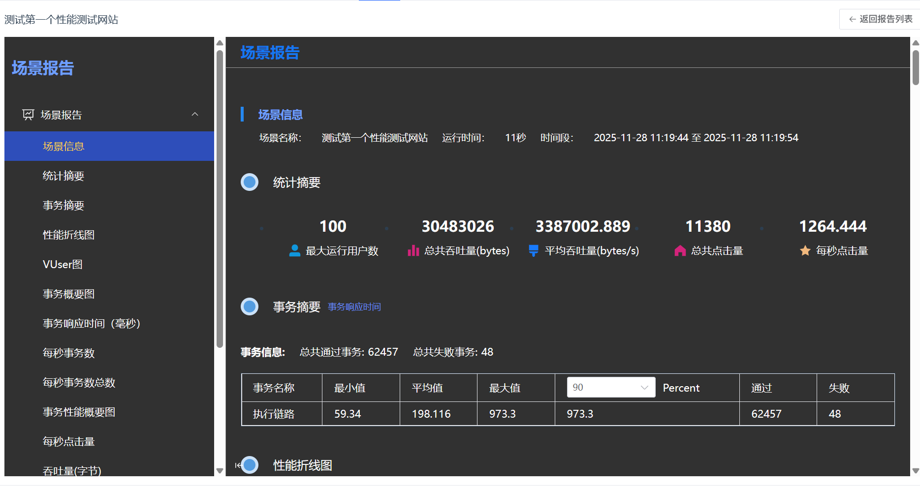 POne在壓測(cè)過(guò)程中,我們可以查看實(shí)時(shí)監(jiān)控,各種維度監(jiān)控?cái)?shù)據(jù),如Vuser圖、性能折線圖,事務(wù)數(shù)等等。