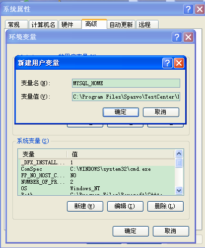 現(xiàn)在在配置環(huán)境的沒有配置MYSQL_HOME的環(huán)境變量,如果沒有需要在環(huán)境變量中的用戶環(huán)境變量中添加MYSQL_HOME的環(huán)境變量信息。 MYSQL_HOME C:Program FilesSpasvoTestCenterDBSVR