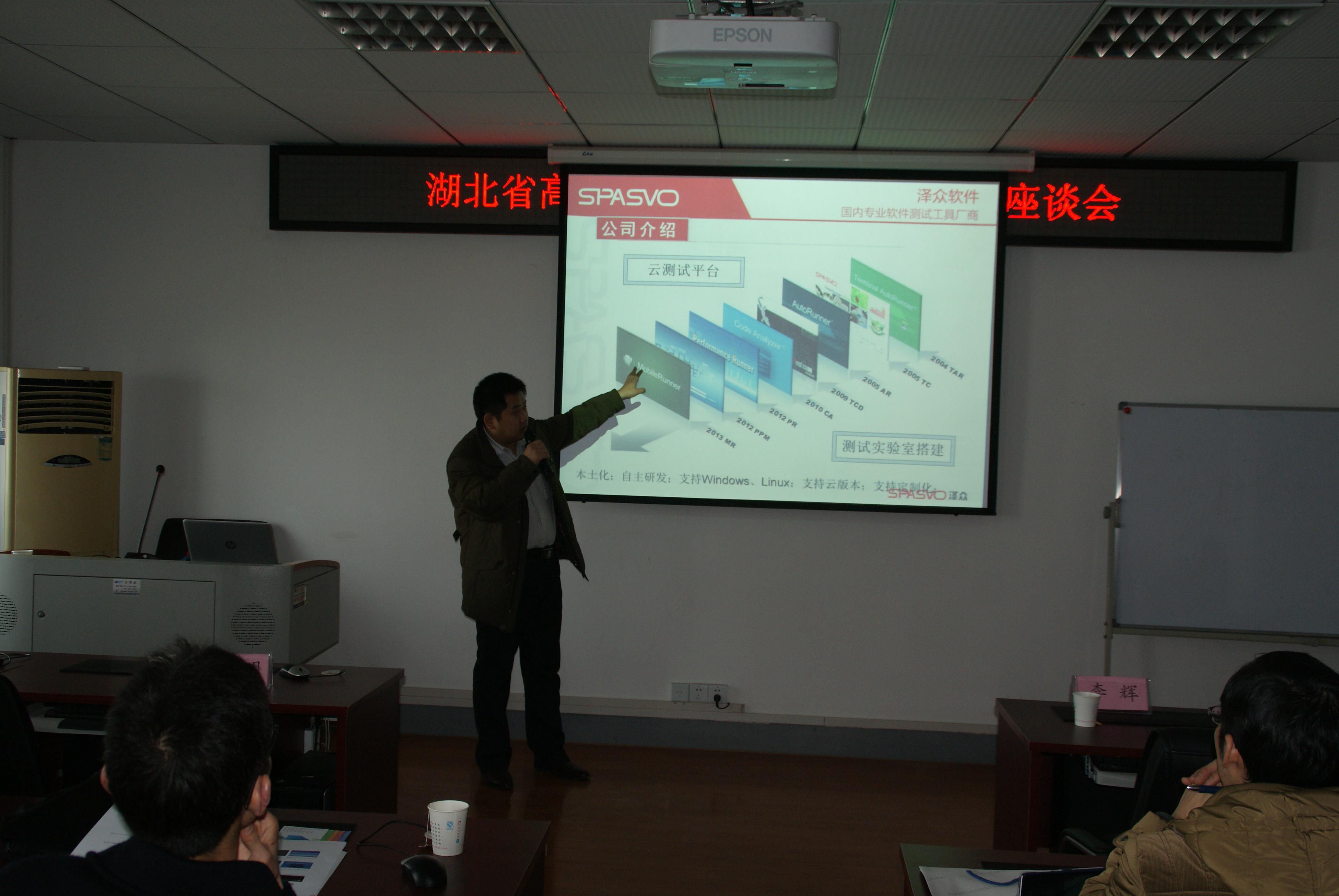 湖北省高校軟件測試座談會于2015年1月15日在武漢大學(xué)成功舉辦,本次座談會是由澤眾軟件和湖北軟件測評中心聯(lián)合舉辦。共有來自湖北省各地的24所高校、40余名老師蒞臨參加。