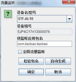 “自動生成”按鈕可以生成已連接手機打開的APP應(yīng)用包名;