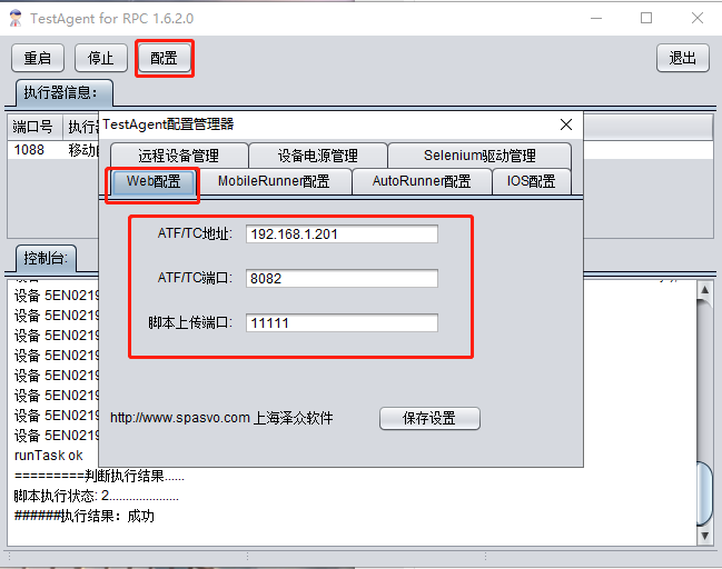對(duì)TestAgent需要連接的ATF/TC數(shù)據(jù)庫(kù)IP,ATF/TC數(shù)據(jù)庫(kù)端口,MR腳本上傳端口進(jìn)行配置。