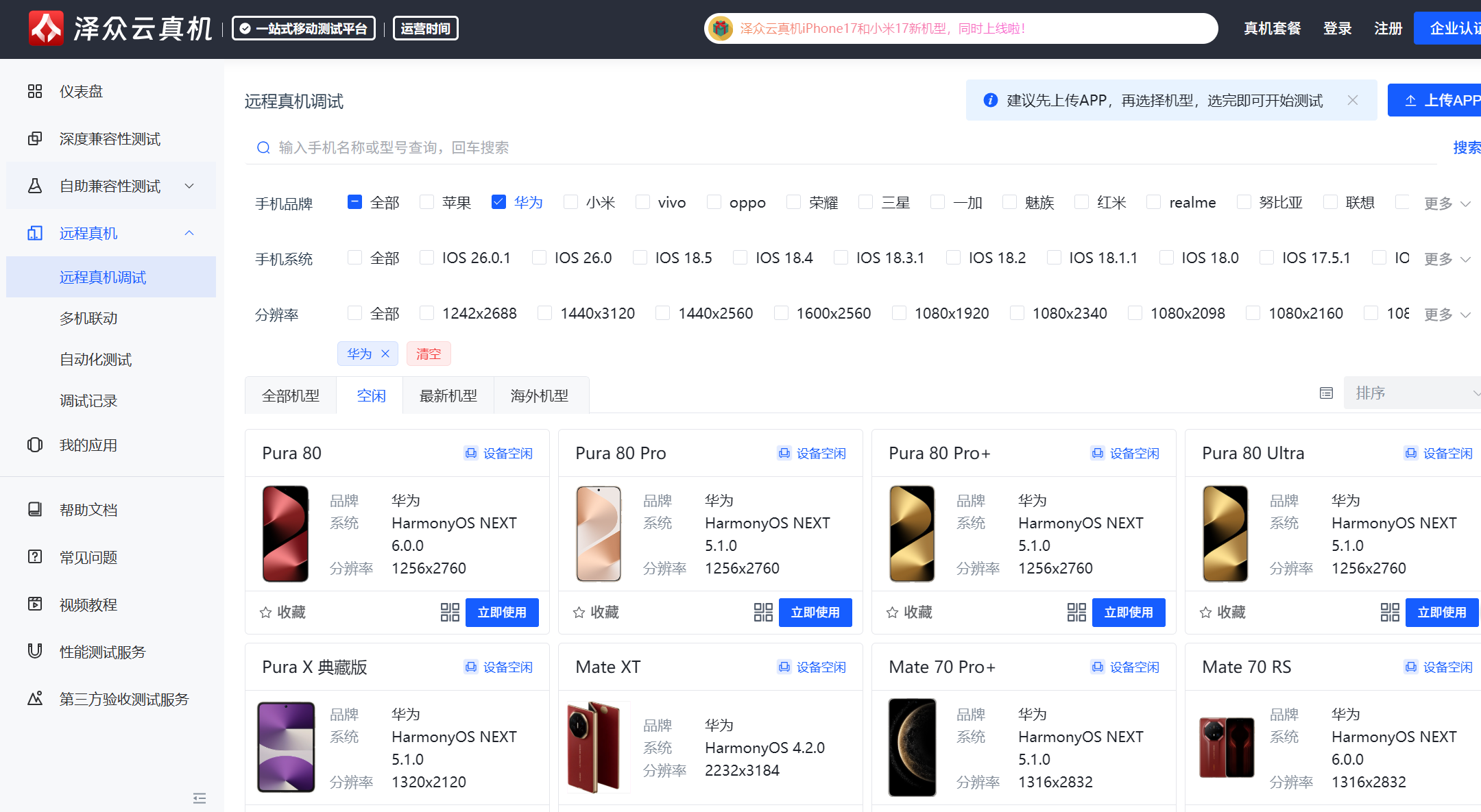 云真機平臺響應速度、設備可用性(故障率 < 1%),支持批量并發(fā)測試。