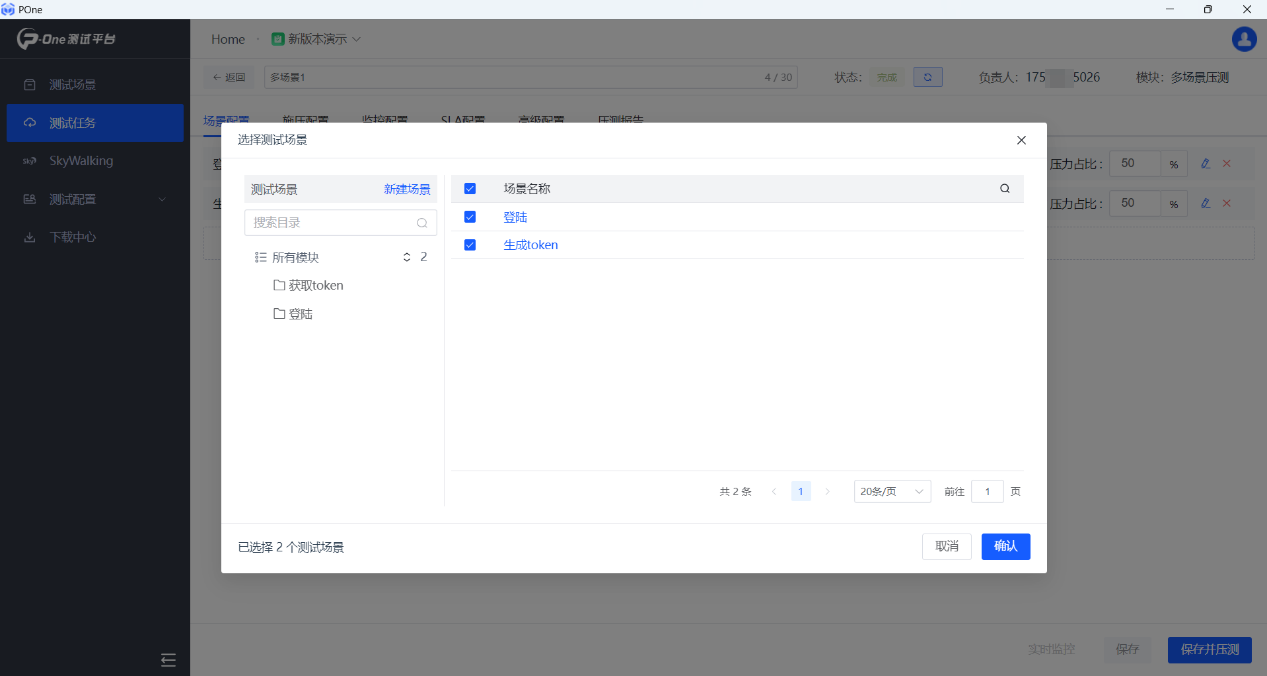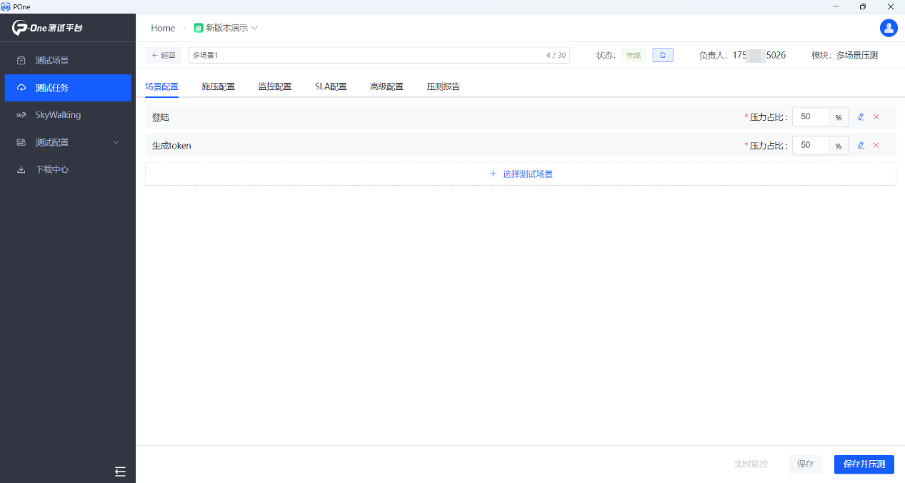 市場上大部分在線性能測試平臺,不支持多場景壓測,受限于技術(shù)方面原因,僅能單場景壓測,一直是用戶痛點所在,在實際項目中,單場景壓測場景需求很少,基本上都要做混合場景或者多場景壓測,當(dāng)然POne性能測試平臺也是從單場景壓測過度到支持多場景壓測,產(chǎn)品技術(shù)團(tuán)隊突破了技術(shù)瓶頸,此功能已正式上線。