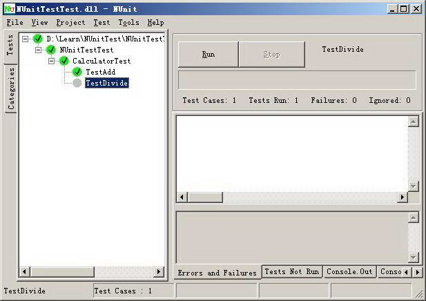重新生成NUnitTestTest項目,NUnit會自動把TestDivide方法加進(jìn)去。