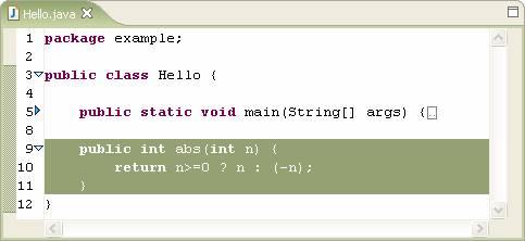 我們創(chuàng)建一個Java工程,添加一個example.Hello類,首先我們給Hello類添加一個abs()方法,作用是返回值:
