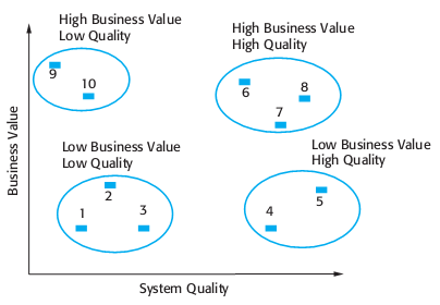 依據(jù)<<Software Engineering>>第9版中關(guān)于軟件進化的說明,軟件維護的決策要從市場價值(Business Value)和系統(tǒng)品質(zhì)(System Quality)兩個維度考察。