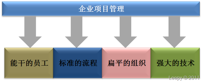 所謂企業(yè)項(xiàng)目管理,是站在企業(yè)高層管理者角度對(duì)企業(yè)中各種各樣的任務(wù)進(jìn)行項(xiàng)目管理,其主導(dǎo)思想是將企業(yè)的運(yùn)作當(dāng)作或者參照項(xiàng)目來(lái)進(jìn)行管理(management by project),這是一種以項(xiàng)目為中心的長(zhǎng)期性組織管理方式,其核心是基于項(xiàng)目管理的組織管理體系。