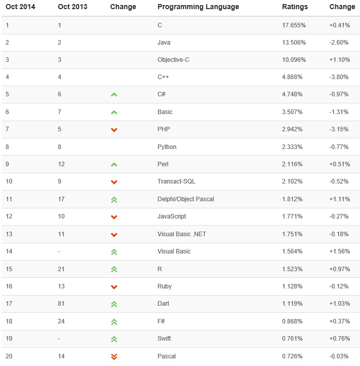 ???????????????????TIOBE??????10?·???????????а?ɡ???????μ??????У????????Java??C++???????????????????????????????????仯???????C??Java??Objective-C??