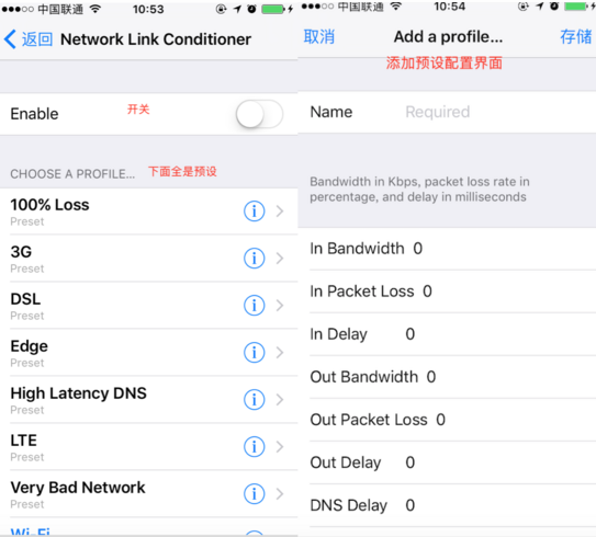 ????1.??IOS?豸??????->??????->NETWORK LINK CONDITIONER